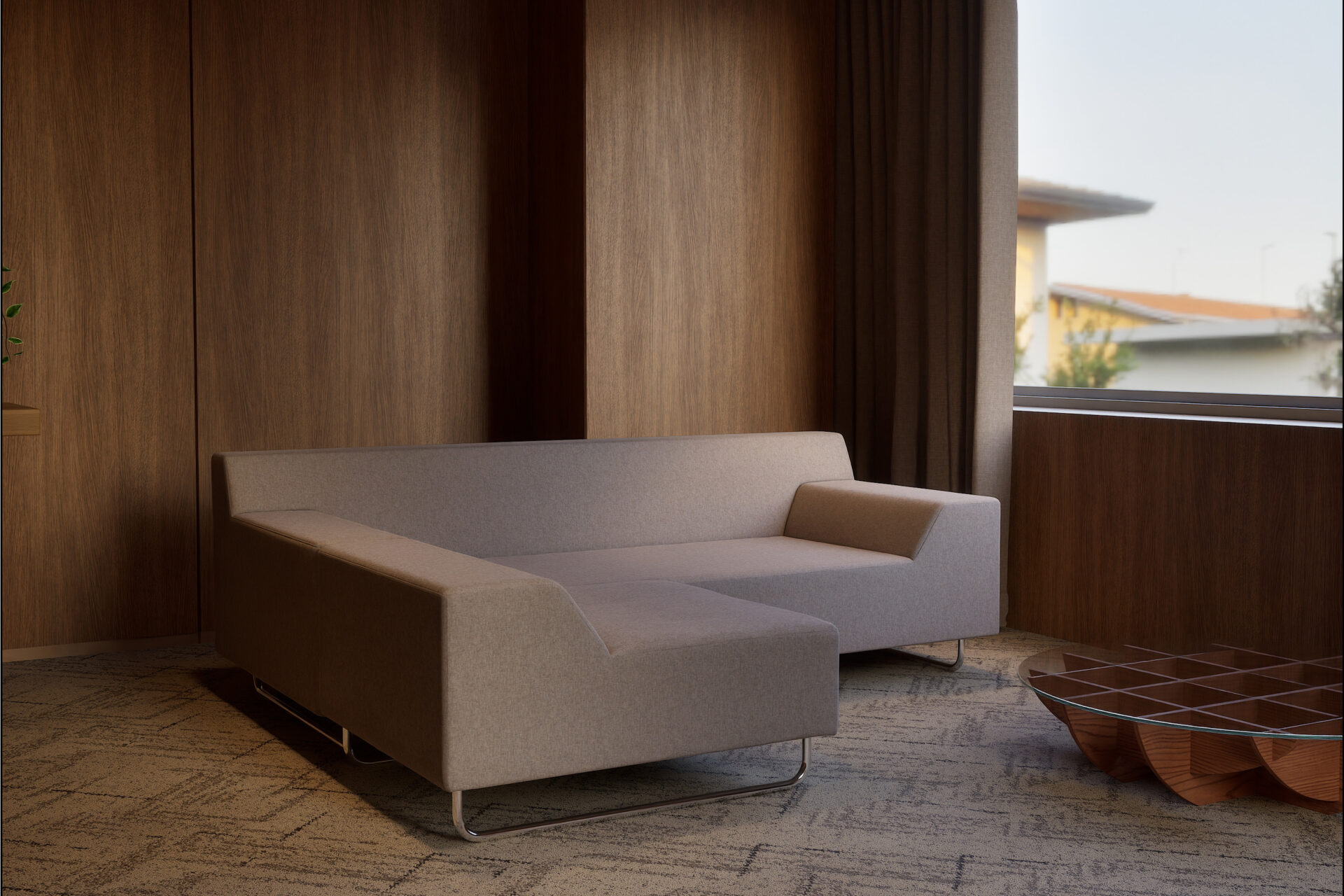 Ajim の中で最もシンプルなデザインのローソファ costa です。多少の波ではびくともしない波止場に泊まる台船をイメージしたものです。