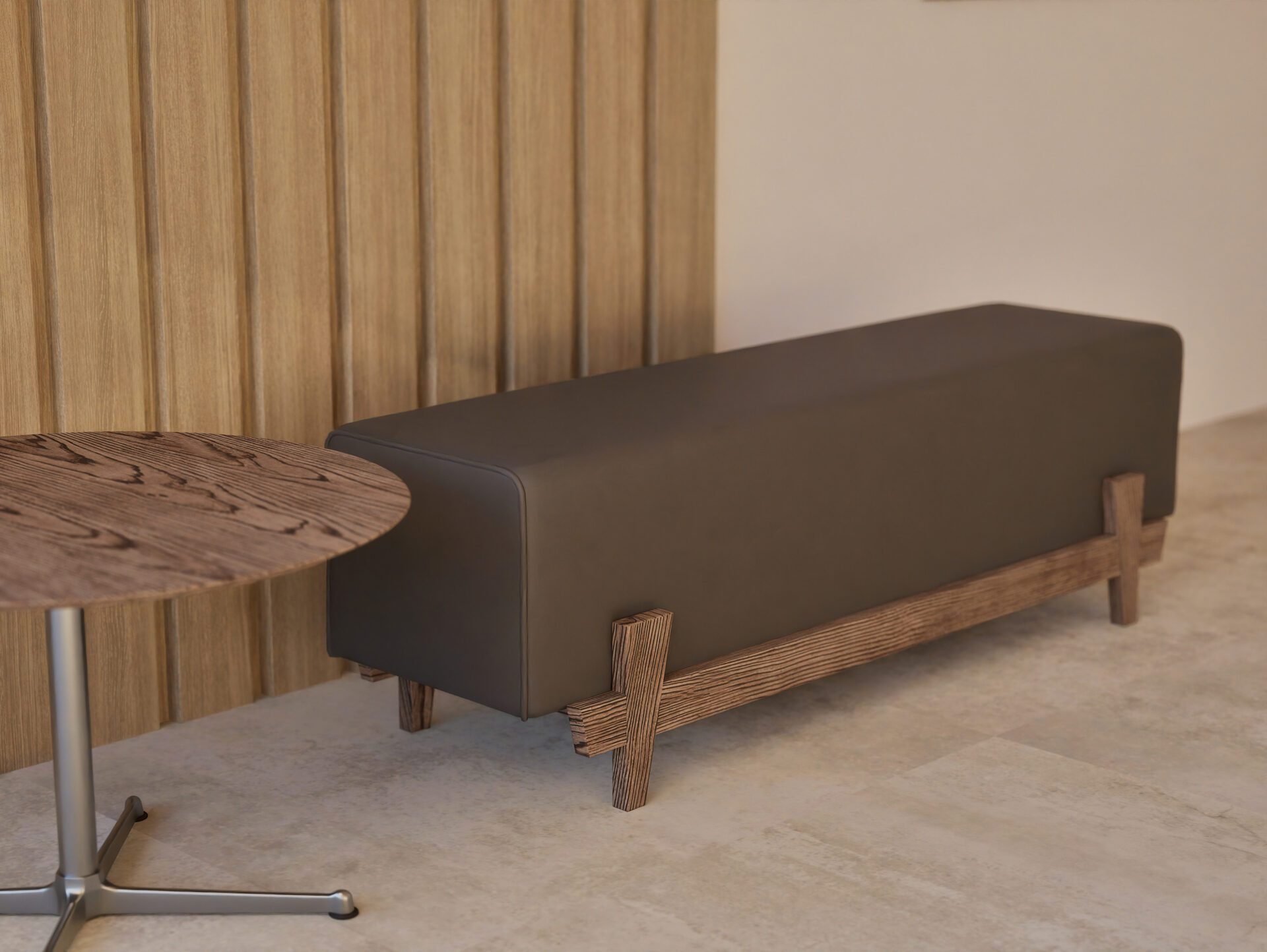 ホテルのフットベンチとして設計されたHull。幅1300mmのコンパクトサイズは、セミダブル以上のベッドにおすすめ。