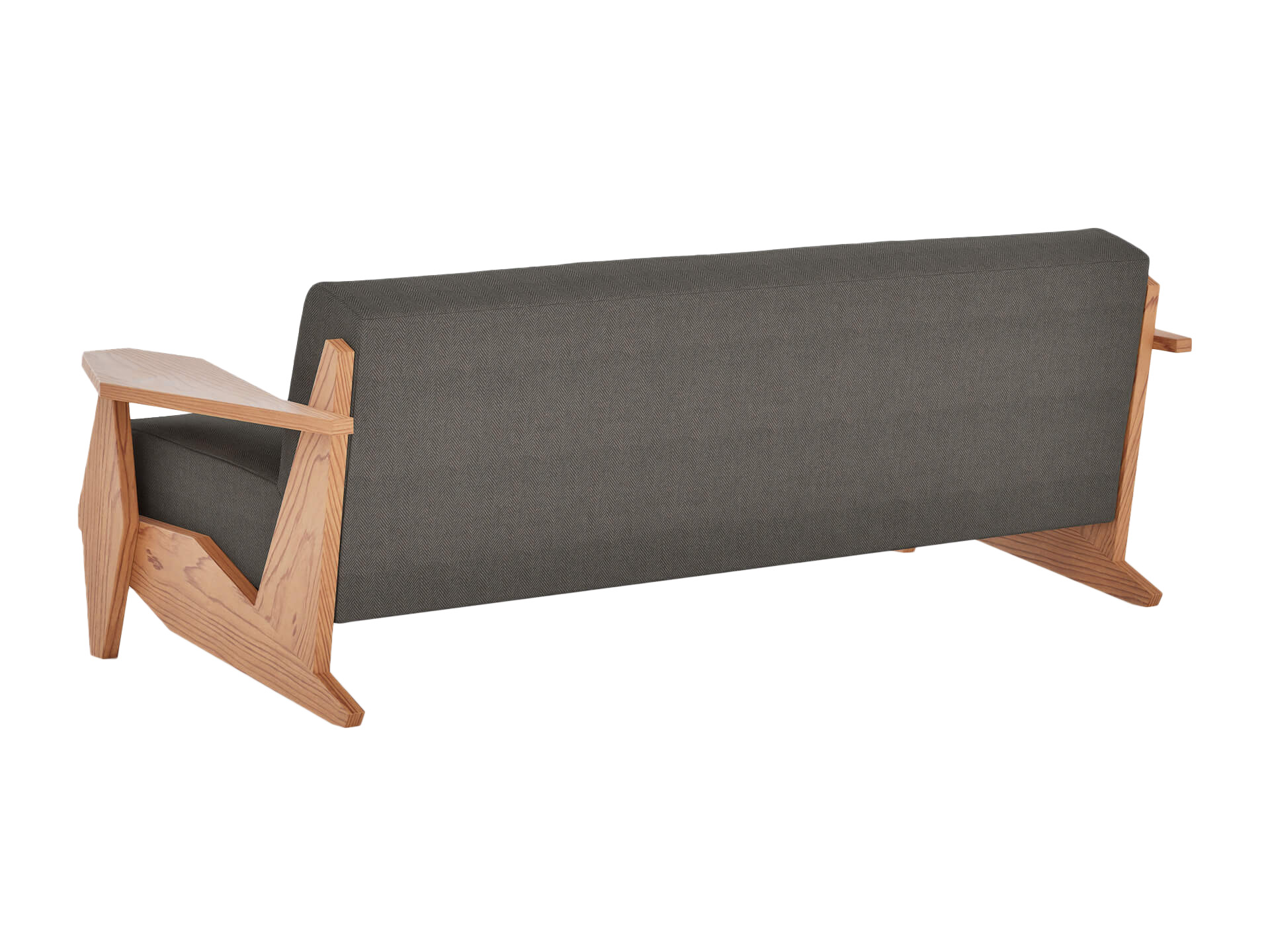 船のスクリューをモチーフにしたデザインの3人掛けソファ。ウレタンフォームでやや硬めに仕上げ、読書などで長時間座っても腰が痛くなりにくい設計。木の味わいが楽しめるソファ。
