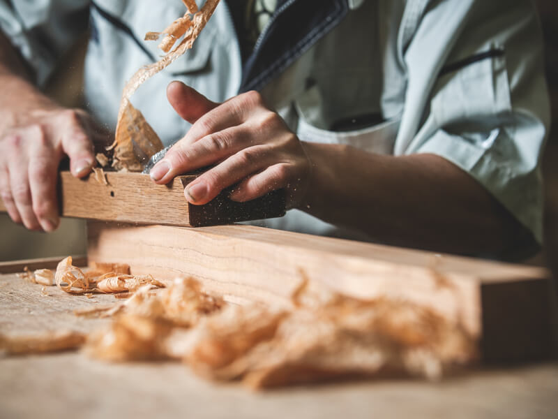 川端装飾では、木材の製材から加工、仕上げ、張り込み、納品に至るまで、すべての工程を自社一貫対応しています。この体制があるからこそ、ニーズを汲み取った商品企画、デザイン開発、タフな品質管理を実現。