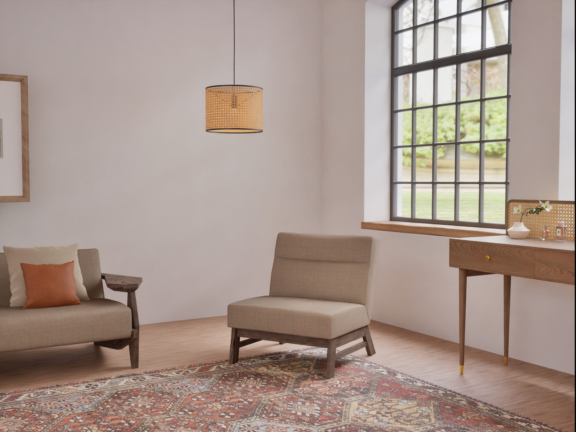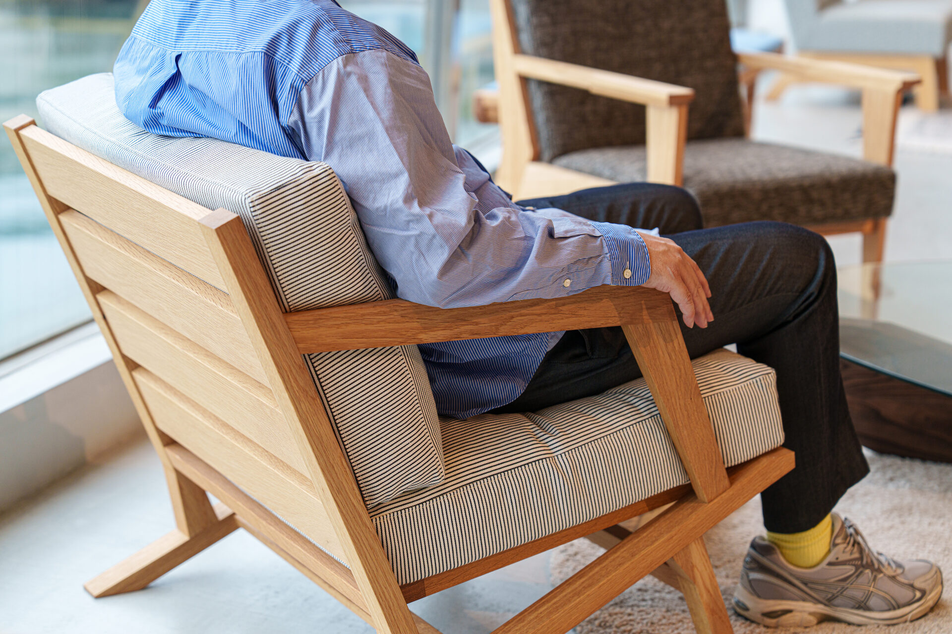 小ぶりながらも奥行きがあり、見た目からは想像がつかない安心感のある座り心地です。